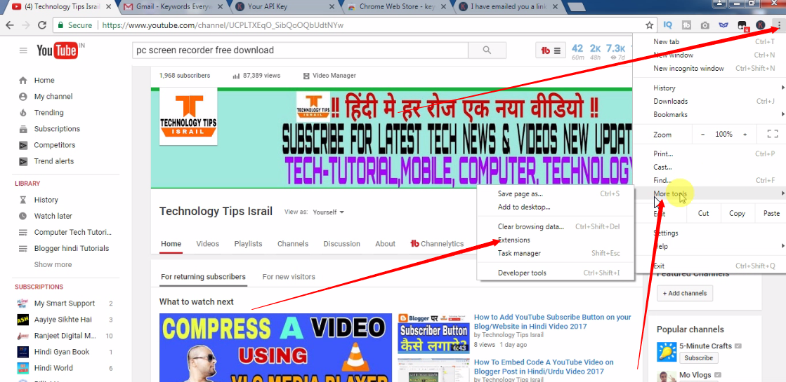 Sabse pahle aap ko apne Chrome Browser me jana hai or aap ko Right side Three Dot dikega uspar aap ko click karna hai uske bad aap ko More tool par click karna hai uske bad aap ko extension par click karna hai aap ko niche Screenshot miljayega aap dekh sakte hai.
