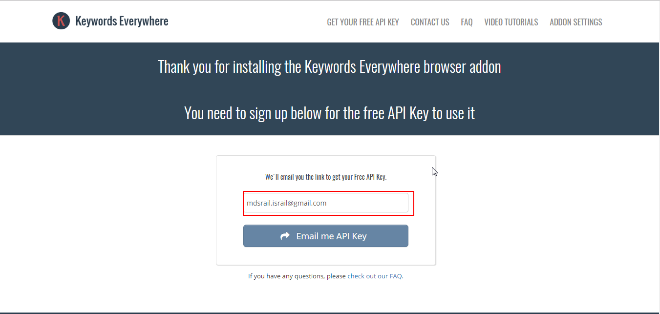 Add karne ke bad aap ke samne Ek form open hojayega or aap ko usme apna Email id dalna hai kiyu ki is extension ko active karne ke liye aap ko Key Ki jarurat paregi jis ka nam hai API key email dalne ke bad aap ko Email Me Api Key par Click karna hai.or aap ke email id par Ek key send hojayega.