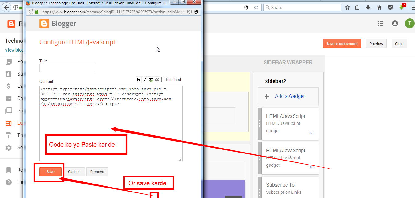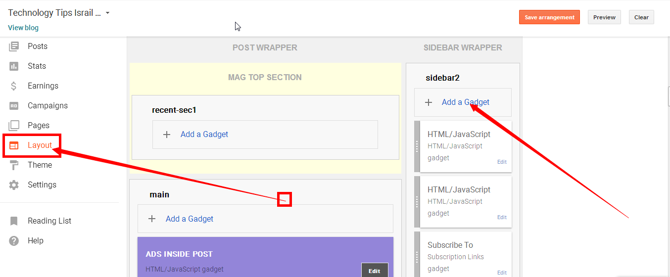 Code Copy Karne ke bad aap ko apne Blogger ya website jo bhi hai aap Us HTLM CODE ko Paste karna hai Maine blogger me kiya hu to mai Blogger ke bare me bata raha hu. ab aap ko Blogger ke Dashboard ko open karna hai or Leyout Par click karna hai or jaha lagana chahte ho waha par ek Gadget Creat karna hai mai niche aap ko Screenshot Dedeta hu.
