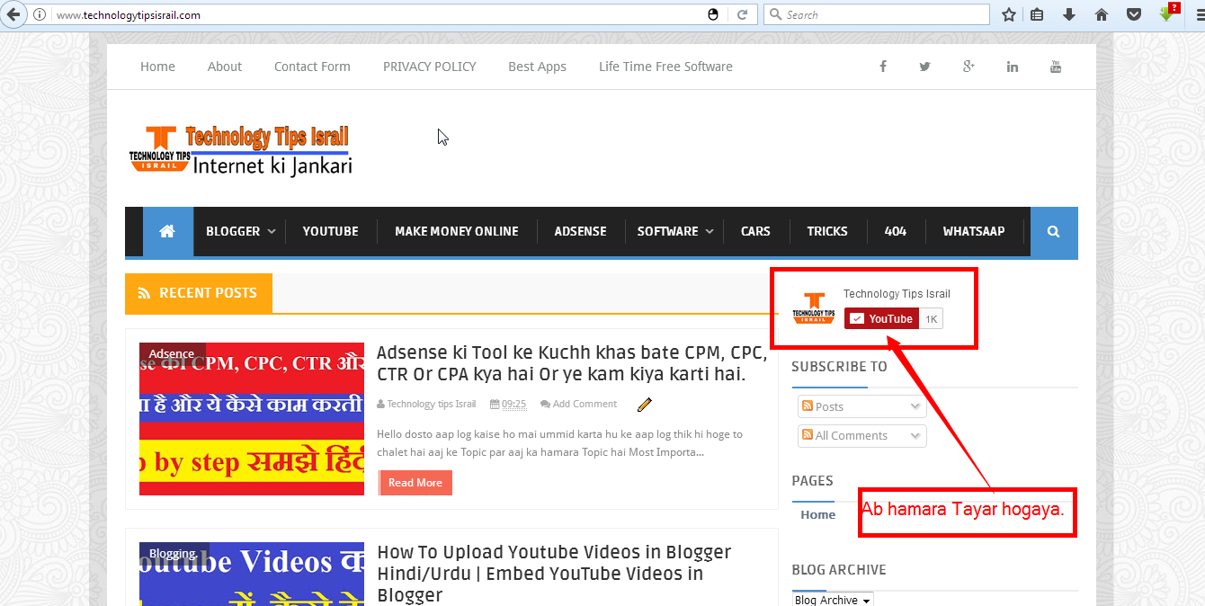 Save karne ke bad aap dekh sakte hai aap ke Blog me YouTube Subscriber Button lag gaya hai For Example mai ne jo abhi lagaya hai apne blog par mai uska screenshot dedeta hu.