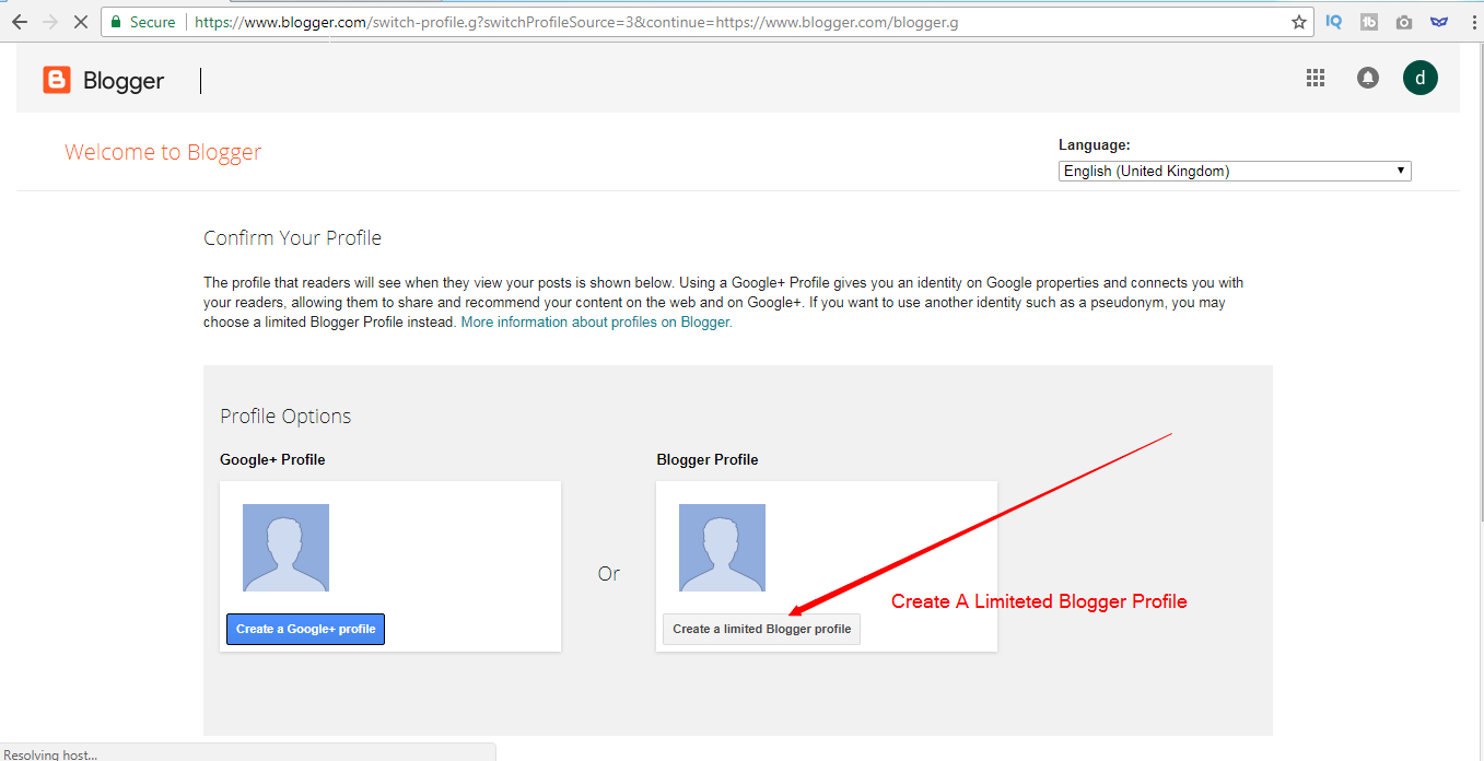 6. Display Name Dal dene ke bad aap ko naya page open hoga usme aap ko dikhega Created A Limited Blogger Profile To. aap ko Us par Click karna hai. Aap Niche Screenshot Diya ha aap dekh sakte hai
