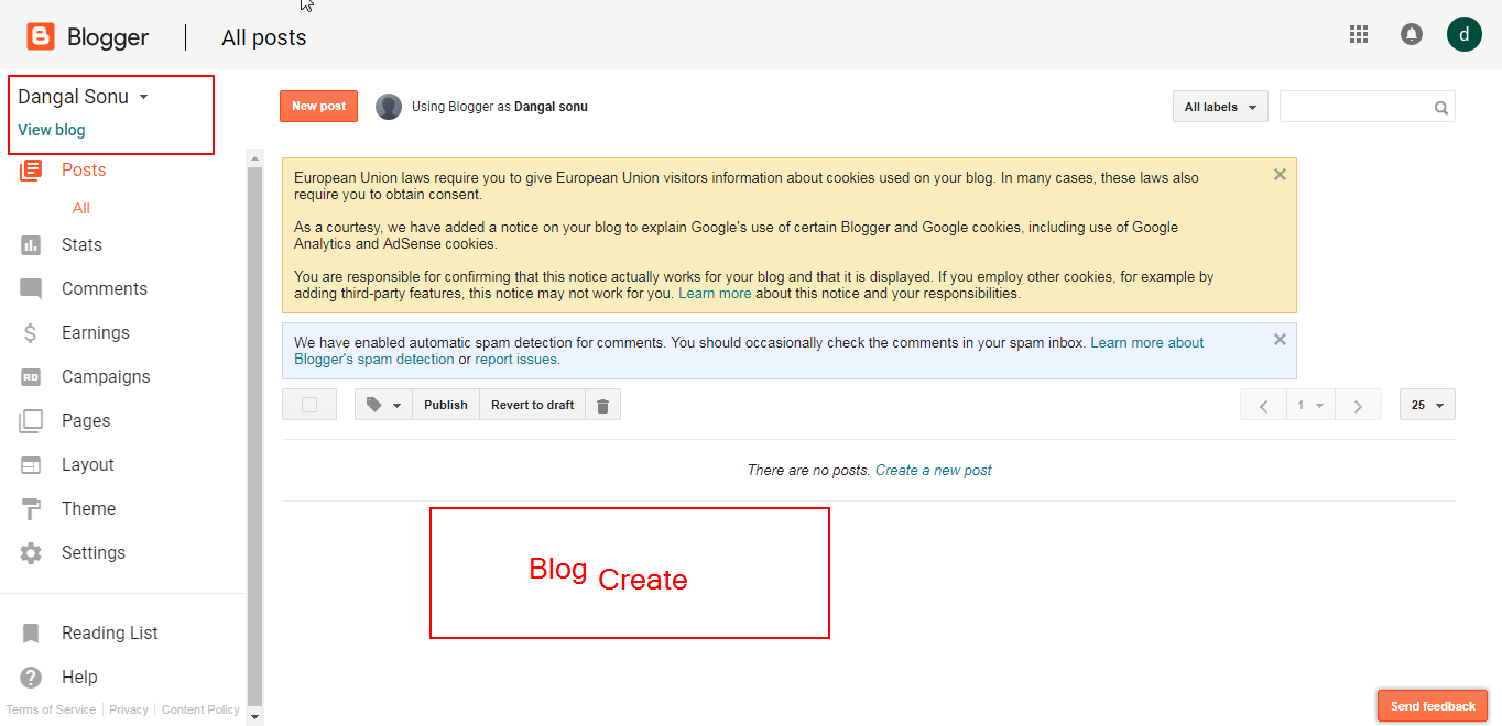 4. Is ke bad aap ko Option Dikhega ki aap ko bola jayega Create New Blog To aap ko uske