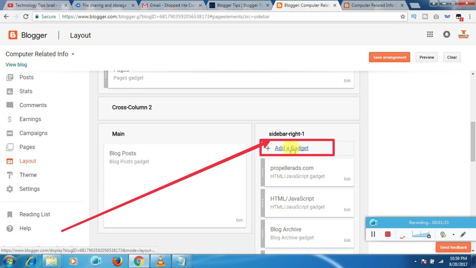 • Uske bad aap ko ek Gadget Create karna hoga us ke liye aap ko Right Side Likha Dikhega Add A Gadget par click karna hoga.