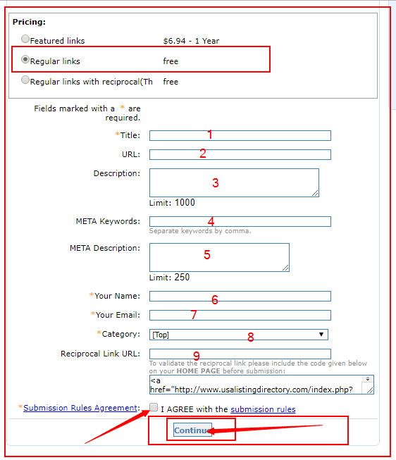 10. Reciprocal Link URL Ko Khali chhor dena hai.